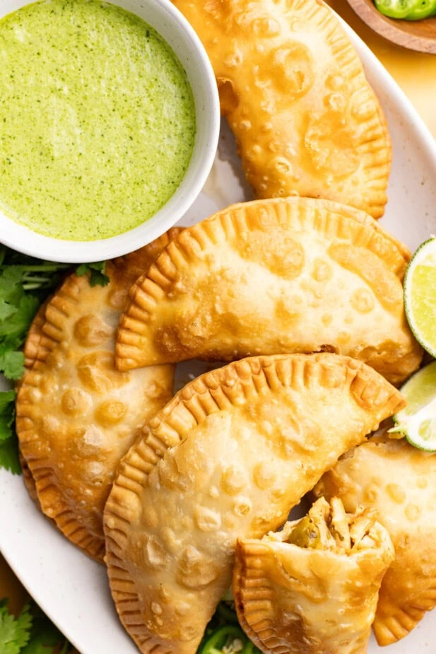 This site may be rooted in bold global flavors, but if there’s one cuisine that feels like home to me, it’s Hispanic food. I grew up eating homemade chicken empanadas, and this recipe is an ode to those memories. Crispy and golden on the outside, juicy on the inside, these empanadas are filled with chicken in a savory sauce seasoned with sazón, sofrito, and my favorite briny green olives.