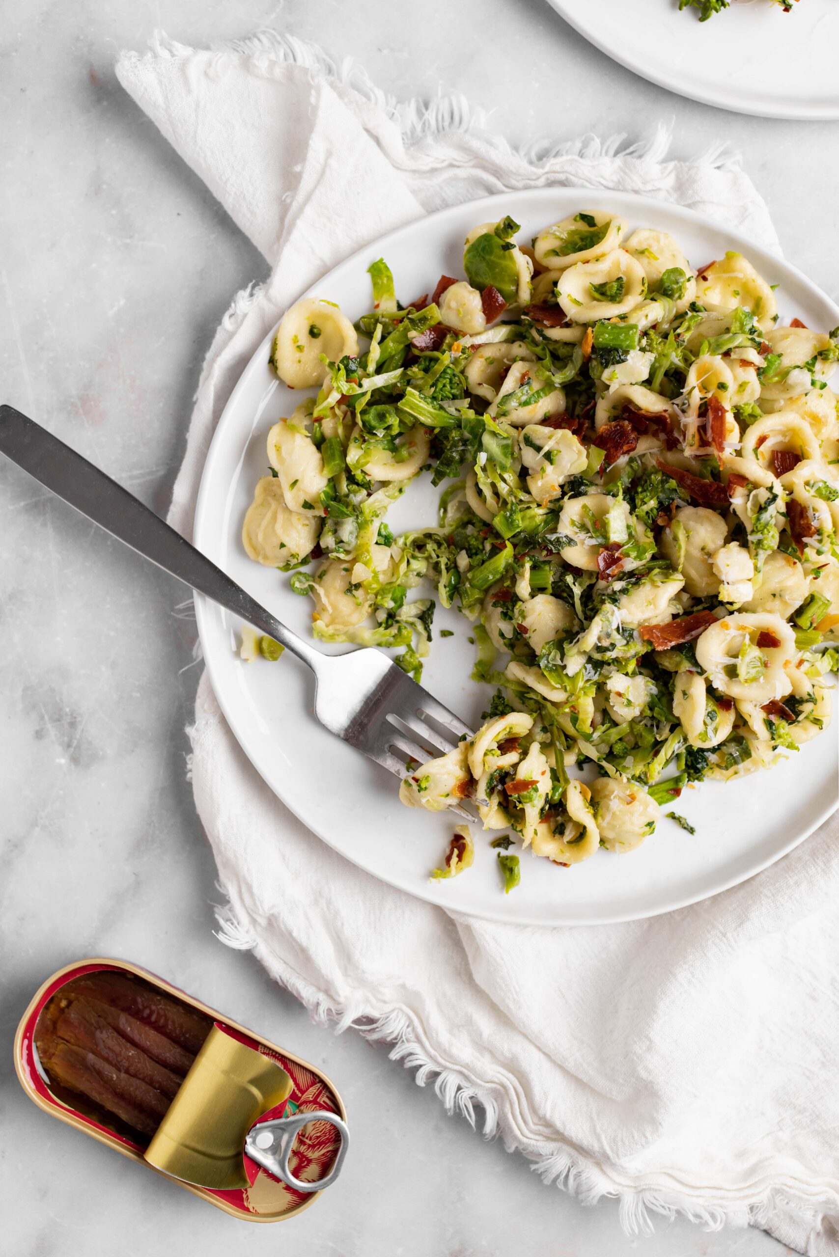Uh, please don’t. I mean you can do anything you want, and broccoli would fit right into this dish, but let’s be honest broccoli goes with anything. If you absolutely must sub out the broccoli rabe, extra Brussels sprouts or broccolini work well.