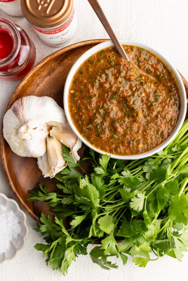 Want to level up your cooking? Want to turn a dish from great to spectacular? The key is sauces. This Red Chimichurri, also known as Chimichurri Rojo, is a staple in my house—and for good reason. This slightly smoky, slightly sweet sauce is packed with herbs, a hint of acidity, and a ton of flavor. If you’re a fan of green chimichurri, it’s time you tried its distant relative, which is just as easy to make—and dare I say, might be even more delicious.