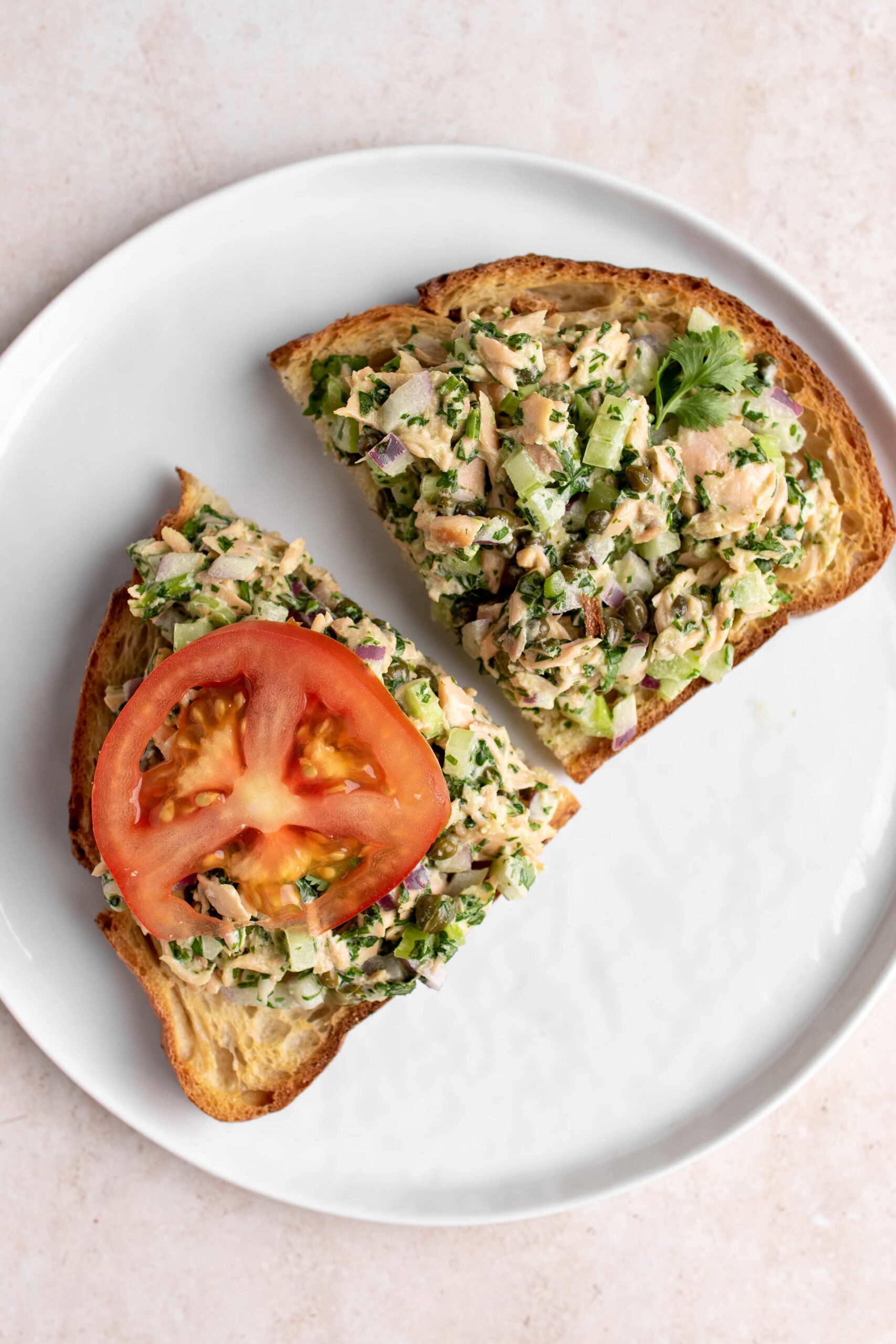 Does this recipe even need detailed instructions? It’s simple: drain the can of salmon and place it in a bowl, mashing it with a fork. Add the celery, onion, cilantro, and capers, then top the salad with mayo. Mix to combine and salt to taste.