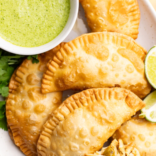 Crispy and golden on the outside, juicy on the inside, these empanadas are filled with chicken in a savory sauce seasoned with sazón, sofrito, and briny green olives.