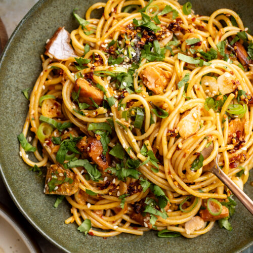 This creamy chili crisp pasta is made from mostly pantry ingredients; its spicy but not too hot, herbaceous with just a hint of smoke.