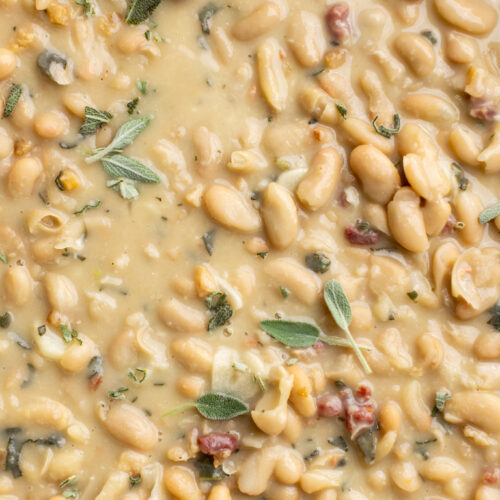 With only a handful of ingredients and 30 minutes, you can have creamy stewed beans bursting with salty prosciutto, earthy sage, and nutty Parmesan cheese.