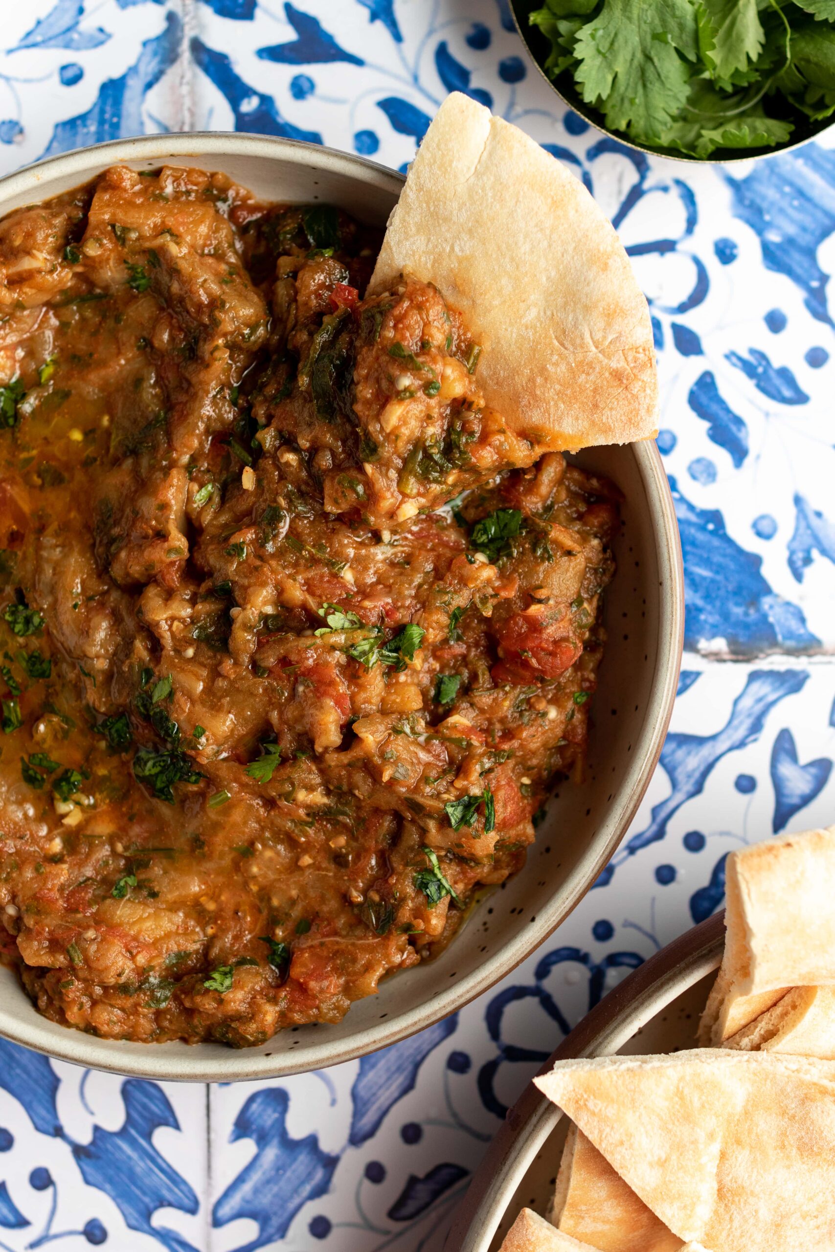 Zaalouk can be stored in the fridge in an airtight container for up to a week. No need to re-heat this dip tastes great cold.